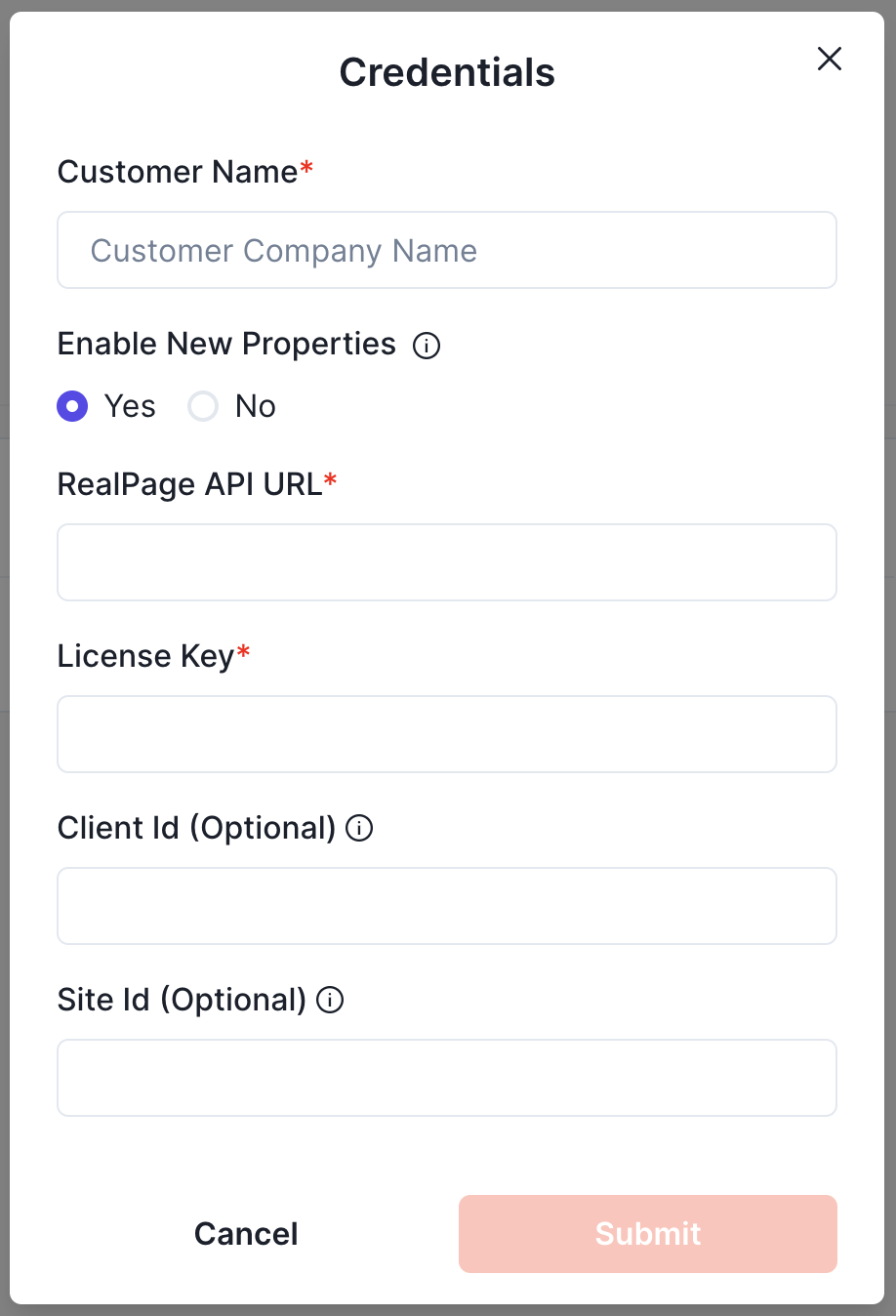 - Site Id (Optional): If you only want to read data from a single site, you must specify this information. Otherwise, your integration will fetch data from all available sites that have a PMC subscribed to you.