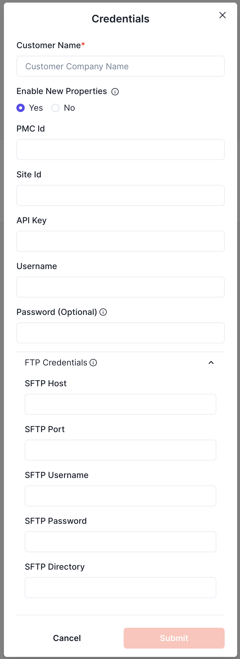 - FTP Credentials: Required to access the SDE Convergent Billing interface. All details are to be provided by the client.